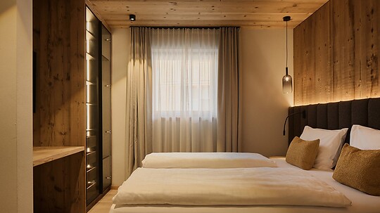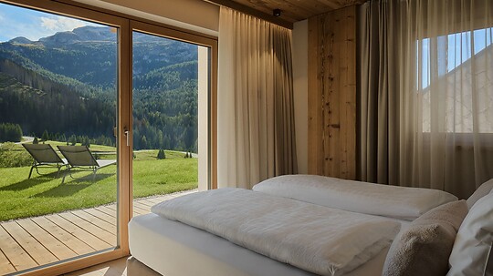 Svegliatevi e lasciatevi avvolgere da un silenzio rilassante. Ammirate fuori dalla finestra le pallide cime delle Dolomiti. Prendetevi tutto il tempo del mondo. Seguite i vostri piedi verso le avventure. Lasciatevi viziare, nella Stube gourmet ladina o da mani esperte. Lasciate vagare la mente nella piscina panoramica. E riaddormentatevi sotto un limpido cielo stellato.